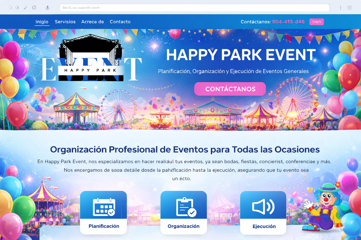 En Happy Park Event nos especializamos en la planificación, organización y ejecución de eventos generales, cuidando cada detalle para que tu celebración sea única, organizada y memorable.